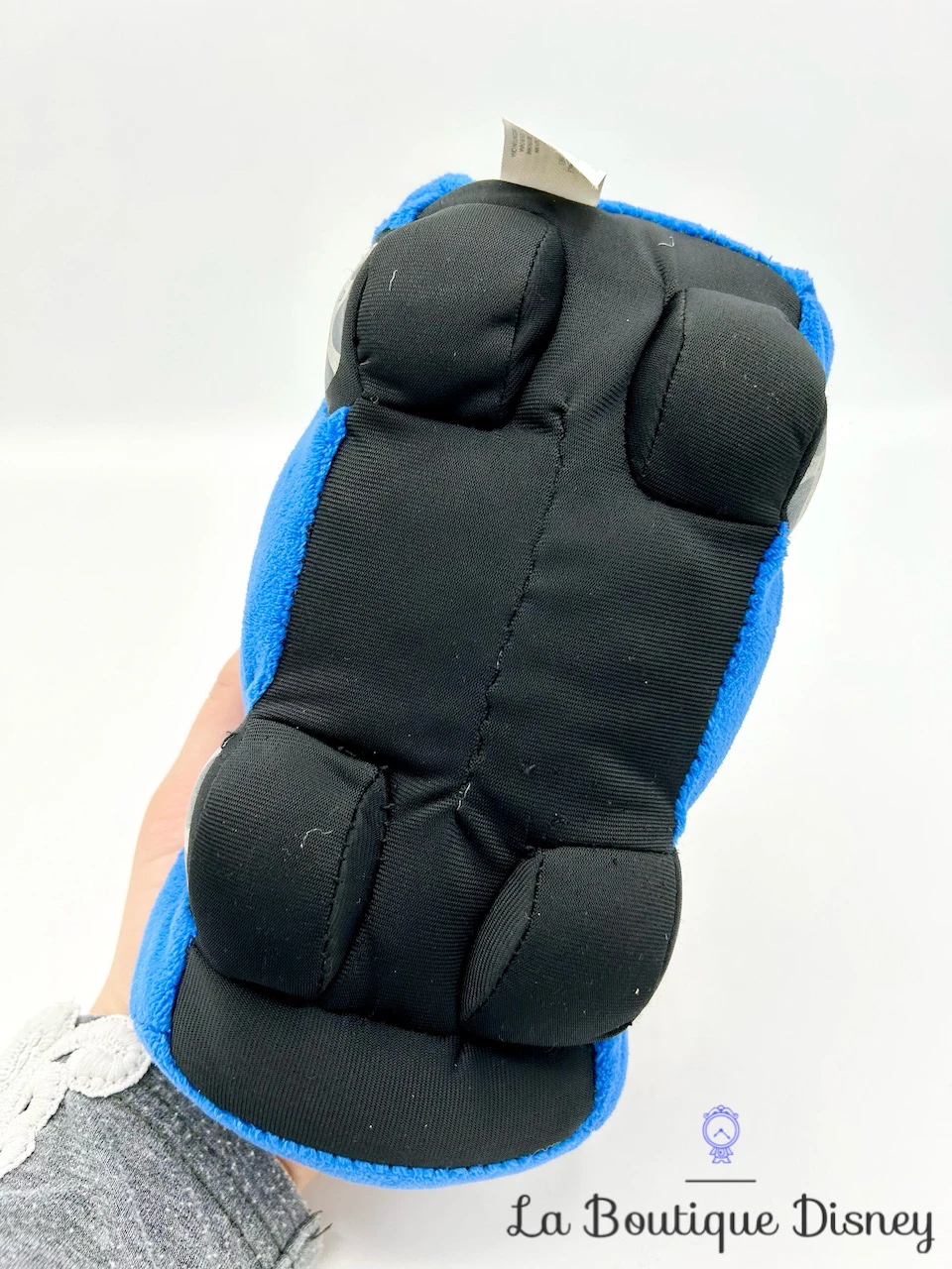 Peluche en forme de voiture du dessin animé Cars de la petite voiture bleue Sally. Elle est l’avocate de la petite ville de Radiator Springs. C’est une Porsche 911. Visage brodé.