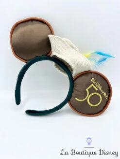 Devenez une véritable star avec ce serre tête de Mickey Mouse et Tiki Room. Collection rendant hommage aux attractions cultes du parc Disneyland et de Walt Disney World dans le cadre des 50 ans du parc « The World’s Most Magical Celebration ». Cette cinquième pièce de la série (5/12) est sur le thème de l’attraction Enchanted Tiki Room. Ears vertes avec des motifs polynésiens et un chapeau au centre avec un écusson de perroquet et des plumes. Broderie « Walt Disney World 50 » au dos d’une oreille.