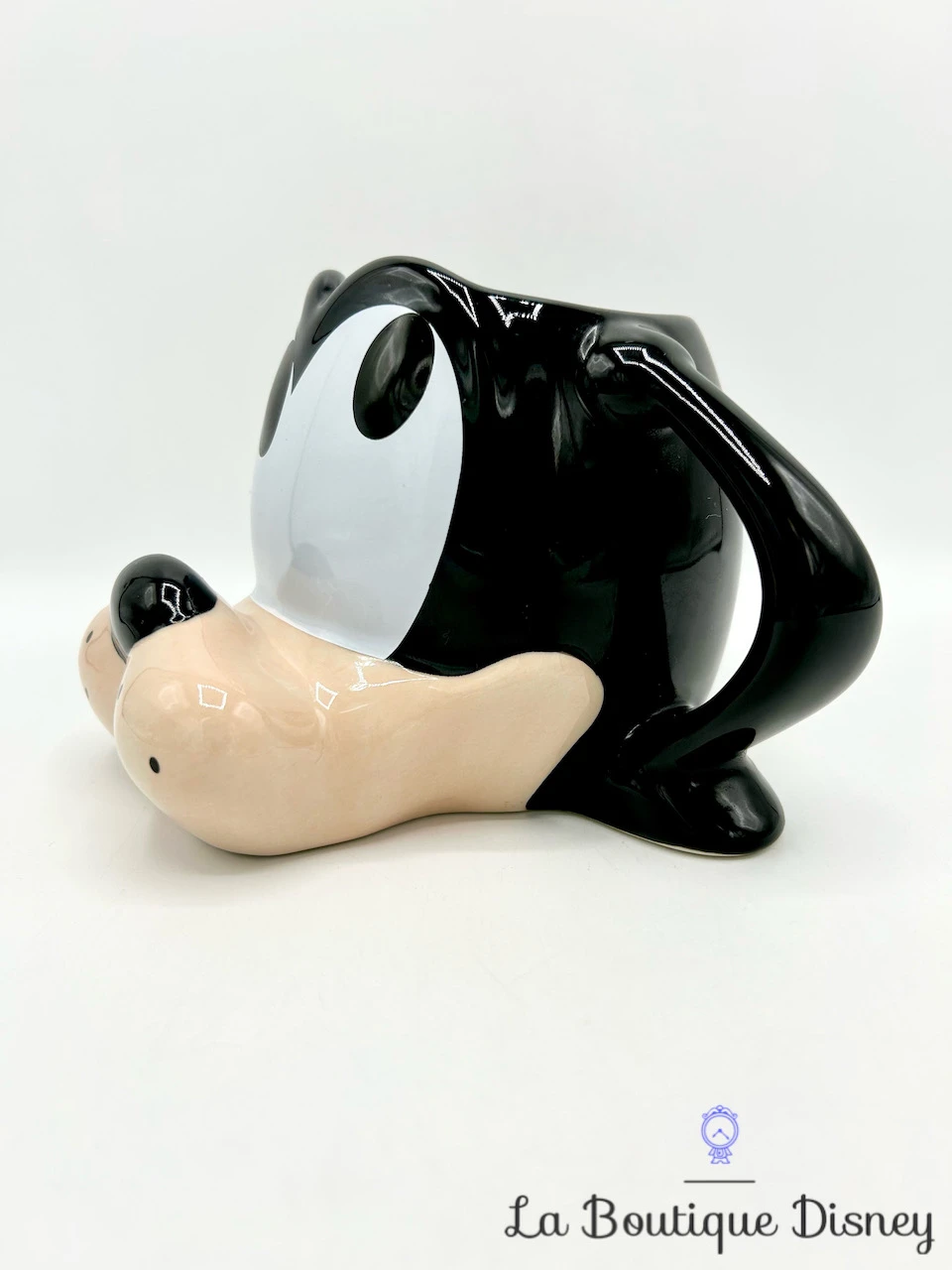 Mug en céramique représentant le visage du célèbre Dingo en relief 3D. La anse noire du mug forme la lettre « D ». Intérieur noir.