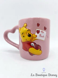 Tasse en céramique sur le thème de l’amour et de Winnie l’ourson au format expresso. Mug rose clair avec Winnie l’ourson tenant une lettre d’amour « To Pooh ». La tasse est en léger relief 3D et sa anse est en forme de coeur.