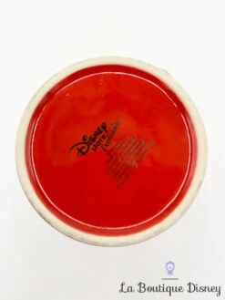 Mug en céramique rouge représentant le portrait d’un des sept nains de Blanche Neige, Grincheux. Il porte son chapeau marron et sa chemise rouge. Il a l’air très mécontent ! Des ombres de pierres précieuses et de diamants sont présentes en fond de motif. Inscription « Grumpy » en vert foncé. Anse et intérieur rouges.